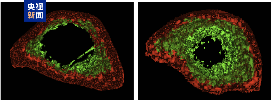 △SRC治疗有效逆转老年猴骨质疏松:对照组(左)、SRC处理组(右)